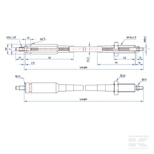 Cablu Bowden flexibil cu lungimea interioara de 2000 mm, echipat cu capete filetate pentru aplicatii diverse in control mecanic.