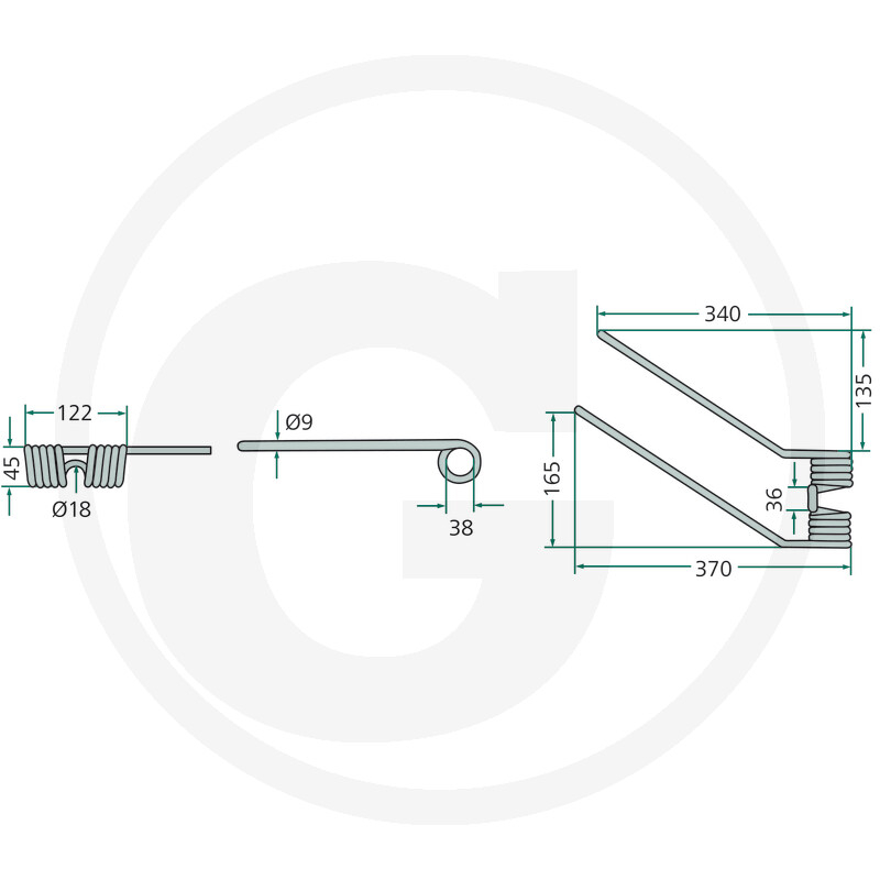 Tip produs: Arc intorcatoare dreapta Cod: 0009263500, 9263500, 260378, 4059139028115 Dimensiuni: Grosime 9 mm | Latime 122 mm | Lungime 370 mm Utilizare: Pentru sistemul de intoarcere a fanului la greblele rotative Bautz si Claas, realizat din otel elastic tratat pentru durabilitate si rezistenta ridicata la solicitari Compatibilitate: Bautz | Claas – greble rotative Greutate: 1 07 kg Pozitie montaj: Sistem pick-up>intoarcere fan – partea dreapta