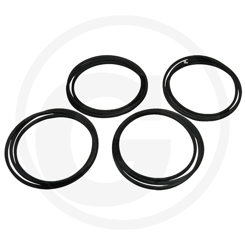 Tip produs: Set curele transmisie cositoare Cod: 122297 Utilizare: Set de 4 curele de transmisie trapezoidale pentru cositoare, realizate din cauciuc vulcanizat continuu Asigura transmiterea eficienta a miscarii si o durata lunga de functionare Compatibilitate: Fella KM167|SM171 Greutate: 1 65 kg Pozitie montaj: Sistem antrenare cositoare rotativa