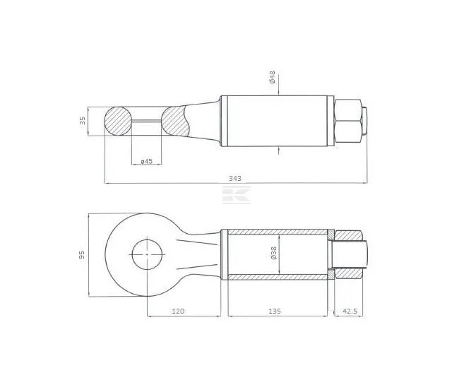 Inele de tractare rotative, 2 - 30 tone, maximum 25km/ora Sarcina verticala maxima: 900 kg Sarcina de tragere maxima: 4000 kg Diametru interior inel de remorcare (orificiu principal): 45 mm Diametru filet: M28 Latime diametru ax: 48 mm Latime/diametru interior ax: 38 mm Lungime totala: 343 mm Latime totala: 95 mm