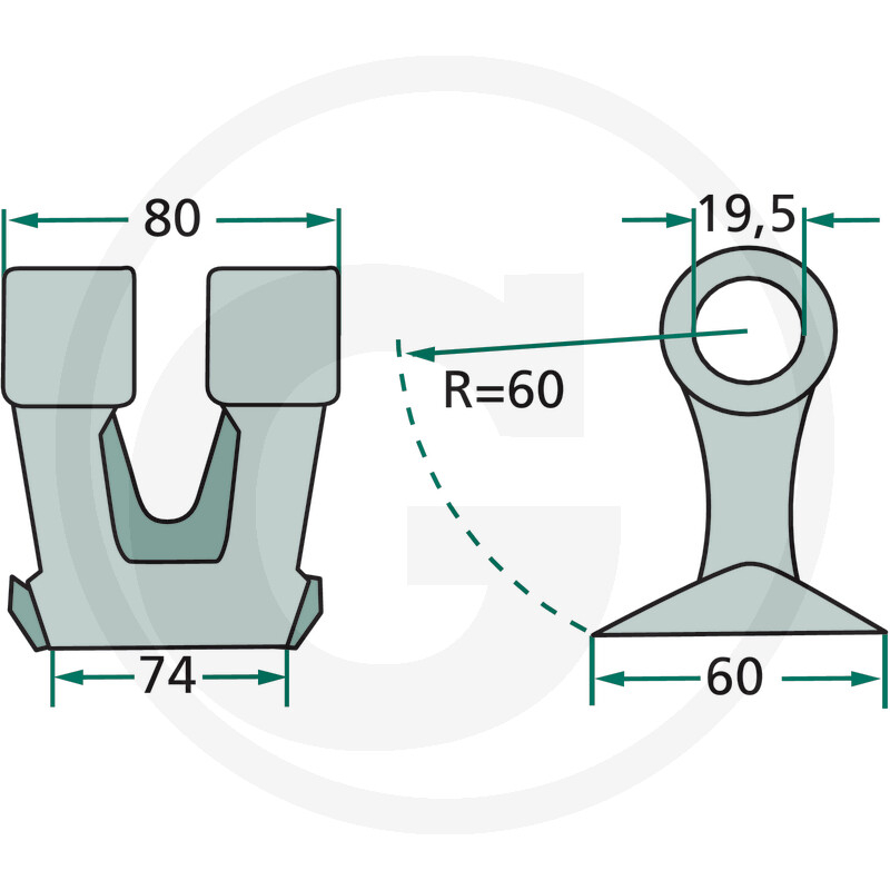 Latime de lucru (mm): 74 Diametru orificiu (mm): 19.5 Dimensiune de asamblare (mm): 80 Ø-raza (mm): 60