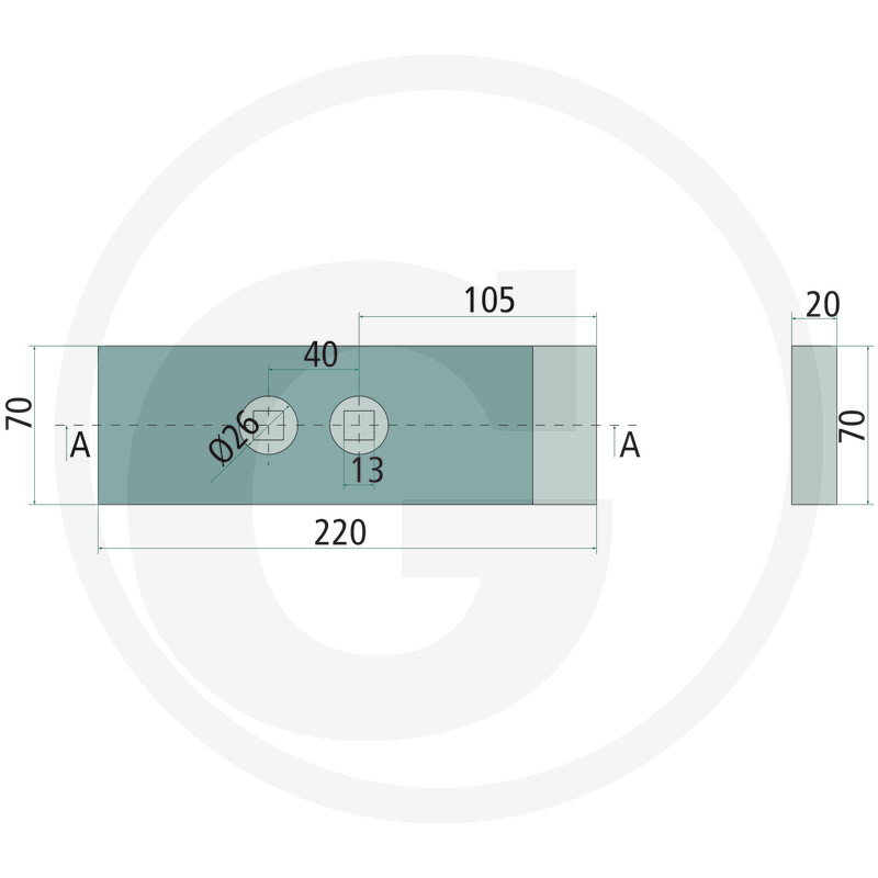 Dimensiuni (mm): 70 x 20 Grosime (mm): 20 Latime (mm): 70 Distanta dintre orificii (mm): 40 Diametru orificiu (mm): 12